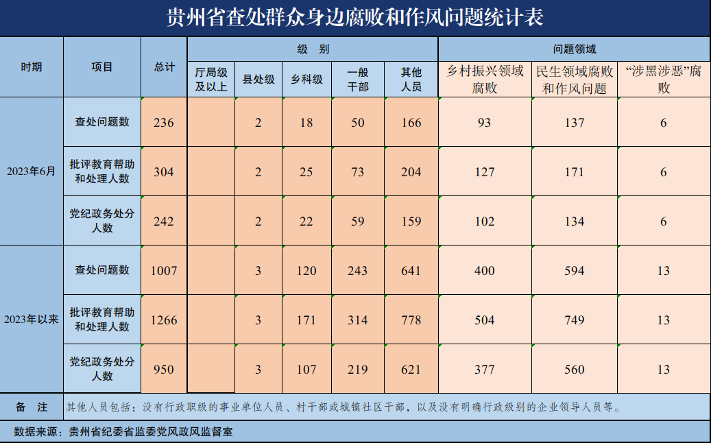 2023年6月贵州省查处群众身边腐败和作风问题236起