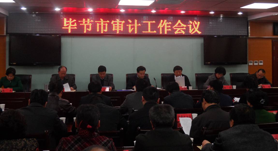 近日,毕节市召开全市审计工作会议,市委副书记、市长陈昌旭作重要讲话,副市长吴安玉主持会议并讲话,市人大常委会副主任倪小兵、市政协副主席杜鹃、市检察院检察长石子友等出席会议。会议主要任务是:贯彻落实全国、全省审计工作电视电话会议和市委一届三次全会、全市经济工作会议精神,并对该市2012年审计工作进行回顾总结,安排部署2013年审计工作。图为会议现场。