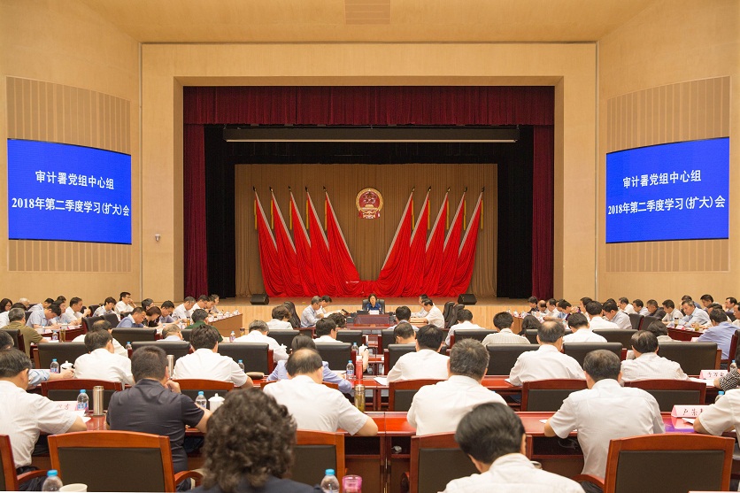 5月30日至6月1日,审计署党组以“传达学习贯彻习近平总书记在中央审计委员会第一次会议上的重要讲话精神,坚决维护党中央对审计工作的集中统一领导,更好发挥审计在党和国家监督体系中的重要作用”为主题,召开2018年第二季度中心组学习(扩大)会。中央审计委员会办公室主任、审计署党组书记、审计长胡泽君主持会议并作中心发言,其他署领导作了交流发言。