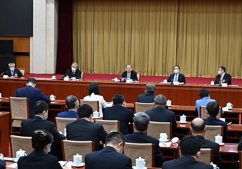 3月6日,中共中央政治局常委、全国政协主席汪洋看望出席全国政协十三届五次会议的民建、工商联界委员并参加讨论。新华社记者 李响 摄