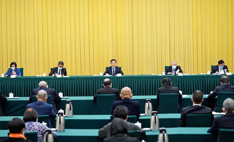 3月6日,中共中央政治局常委、国务院副总理韩正看望出席全国政协十三届五次会议的港澳地区全国政协委员并参加讨论。新华社记者 殷博古 摄