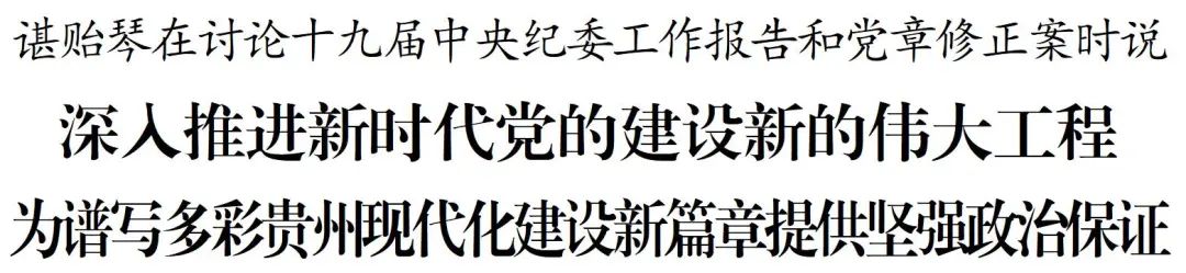 10月18日,党的二十大代表、省委书记谌贻琴在参加党的二十大贵州省代表团讨论十九届中央纪委工作报告和党章修正案时说,要毫不动摇加强党的建设,持之以恒学习贯彻党章,坚定不移全面从严治党,深入推进新时代党的建设新的伟大工程,为谱写多彩贵州现代化建设新篇章提供坚强政治保证。