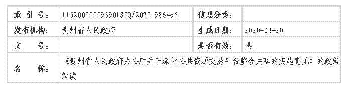 《贵州省人民政府办公厅关于深化公共资源交易平台整合共享的实施意见》的政策解读